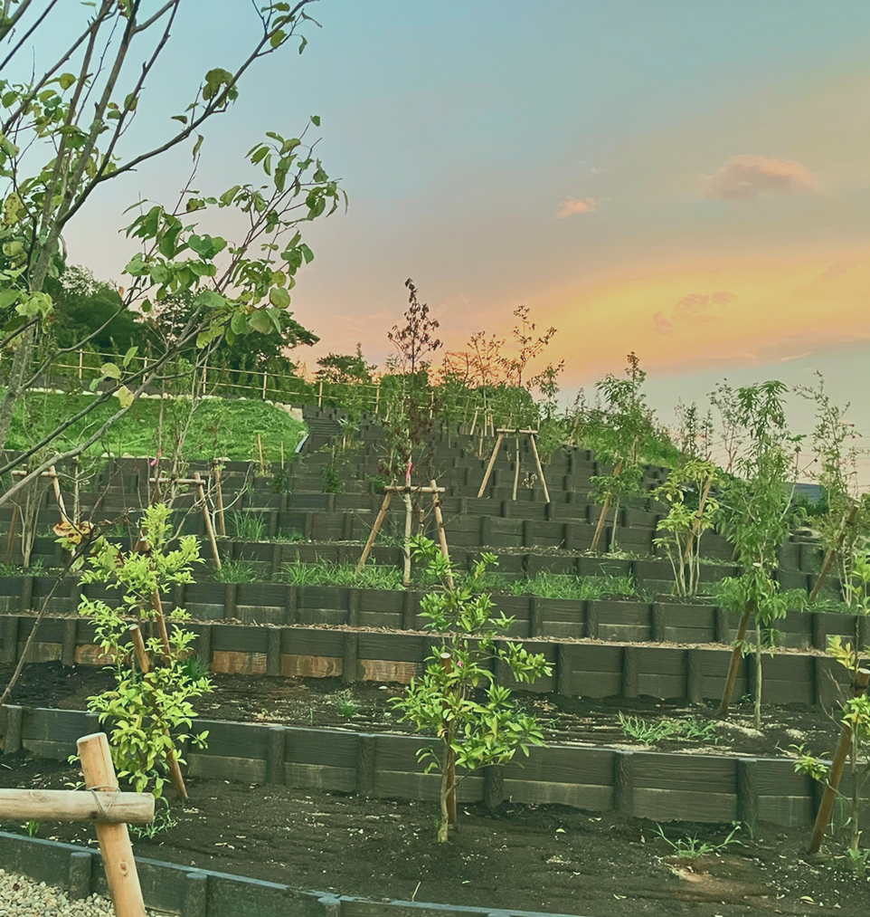 芝生でピクニックをしたり、季節ごとの果樹を楽しむことができます。